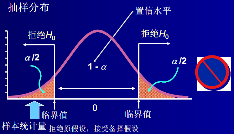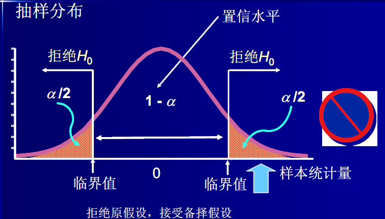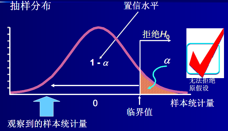 如果在原假设成立的条件下,该统计量几乎不可能发生的,就拒绝或否定原假设;