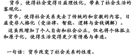在现代社会中,货币成为纯粹的交换工具,其价值只有在交换过程中才能实现,在此情况下,对货币本身的追求便成为目的。