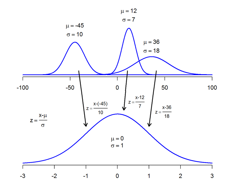 标准分以“均值为基准,标准差为单位”,可用于不同总体的取值比较: