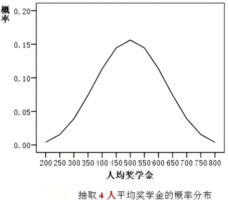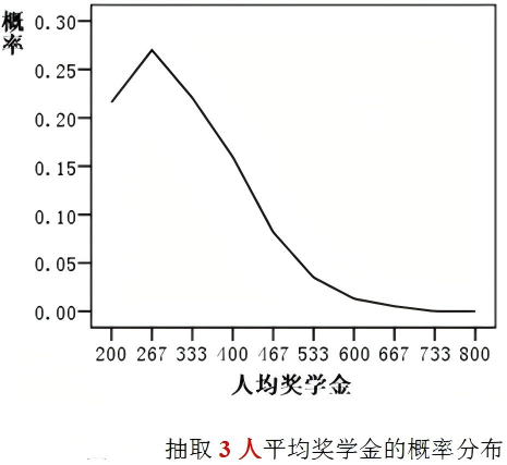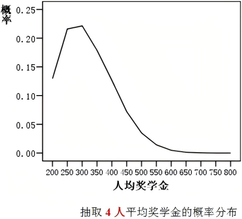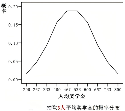 从上述总体中随机抽取两人,观察其平均每人获得奖学金的数量。