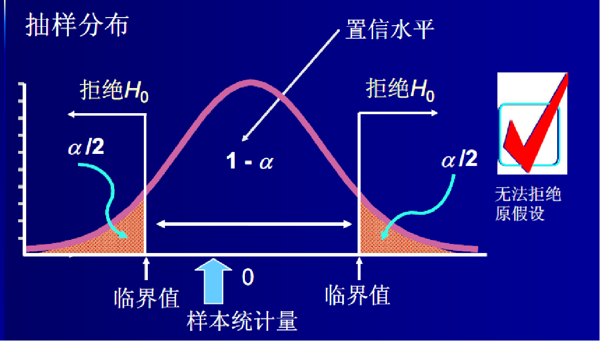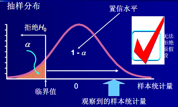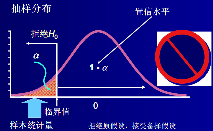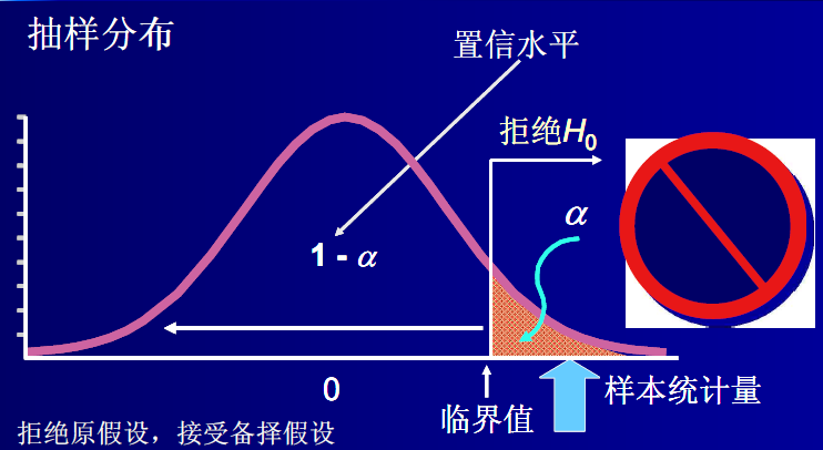 如果在原假设成立的条件下,该统计量几乎不可能发生的,就拒绝或否定原假设;