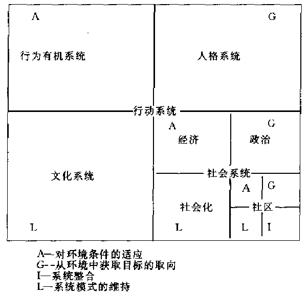 帕森斯认为,社会系统乃至整个行动系统都面临着一些大致相同的基本功能要求,满足这些要求是系统生存的先决条件,而这些要求是通过系统的内部结构得到满足的,因此结构分析必须同功能分析结合起来。